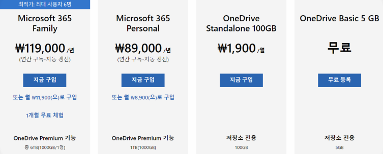 원드라이브 가격표