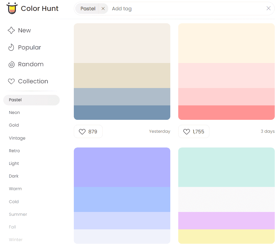 Discover the newest hand-picked color palettes of Color Hunt. Get color inspiration for your design and art projects.
