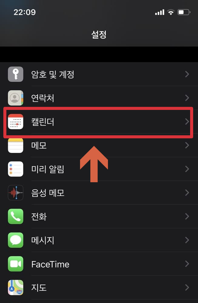 1. 아이폰 설정에 들어가서 캘린더 선택