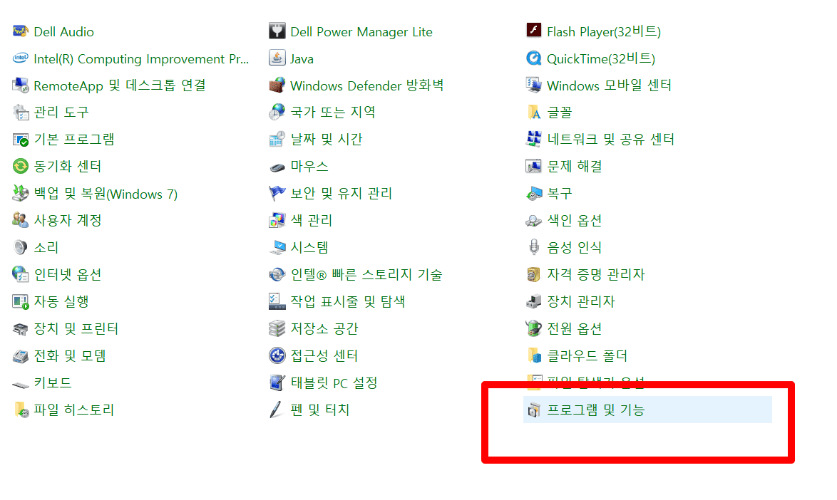 ↓프로그램 및 기능 찾기 방법