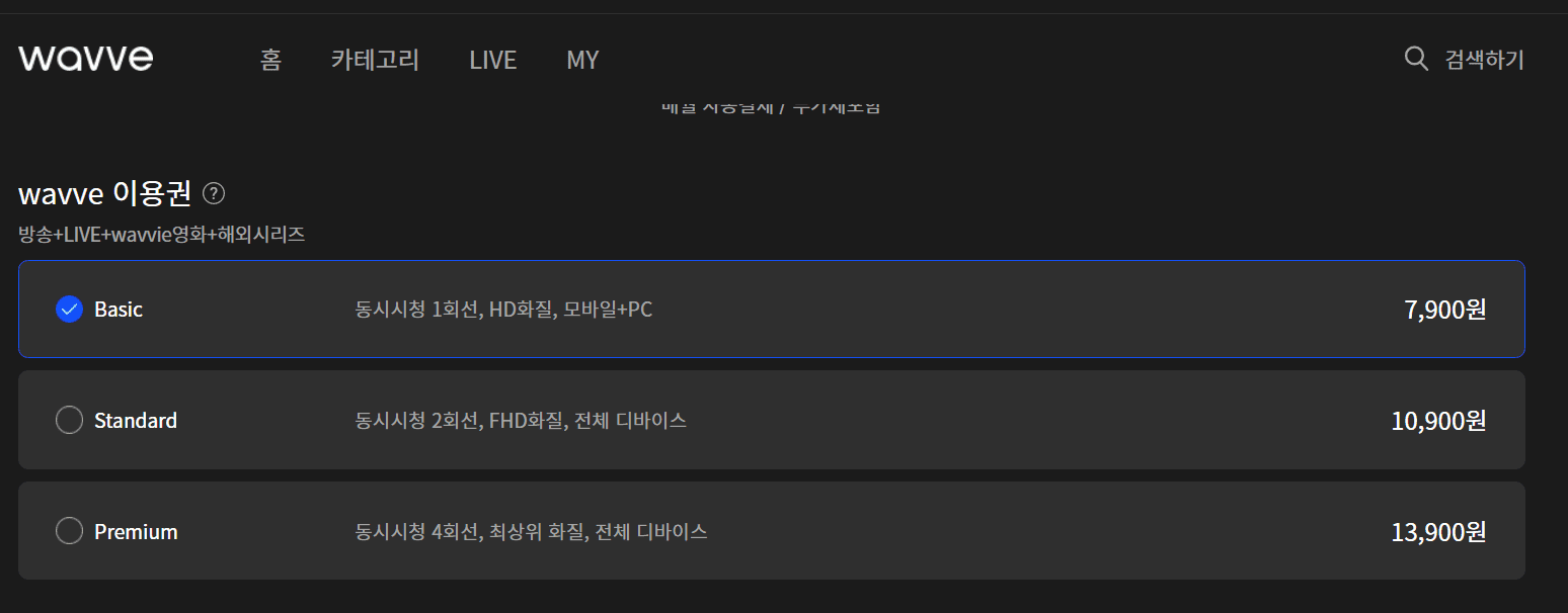 웨이브wavve 가격