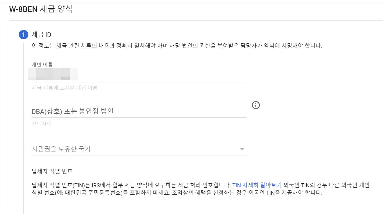 1-3. 외국인 TIN는 외국인을 위한 납세자 식별 번호 입니다.