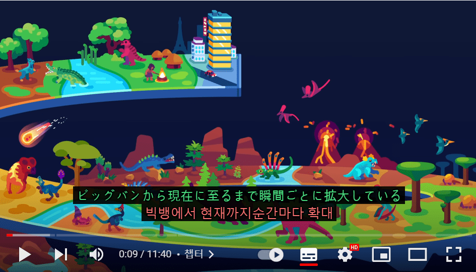 유튜브 자막 영어(일본어) 한국어 동시에 띄우는 방법