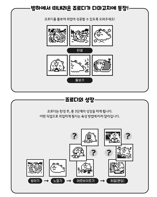 죠르디 다마고치 게임 화면
