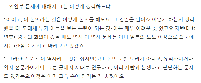 정치가 뿐만아니라 지식인이나 역사 전문가나 여러사람이 제대로 연구하고 의논해봐야 하는 문제기에 그쪽에 맡기는 편이 좋다