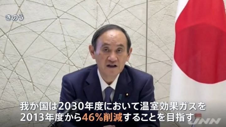 스가 요시히데 총리는 기후정상회의에서 온실가스 감축에 46%를 2030년까지 줄이겠다는 목표를 설정