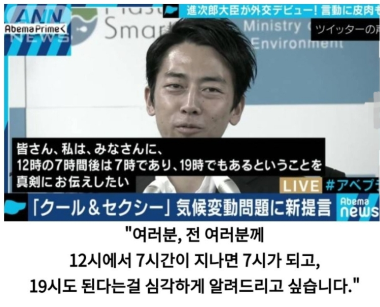 고이즈미 : 이런 질문 해줘서 고맙습니다. 지금까지 없던 질문이었으니 이것만으로 뉴스가 될 겁니다. 뉴스가 되면 사람들이 보고 신경쓸 테니 그것만으로 환경 문제에 도움이 될 겁니다.