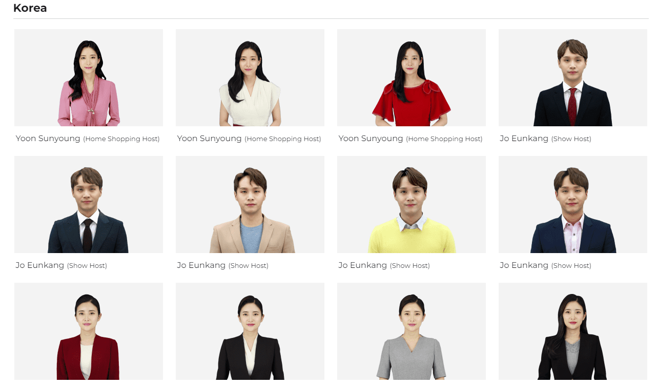 본인의 얼굴이 될 아바타 얼굴을 선택하면 AI가 자동으로 가상인간을 영상에 넣을 수 있는 상태로 만들어 줘서 매번 촬영을 할 필요가 없습니다.